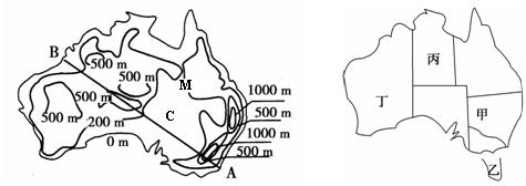 3、综合题 读澳大利亚地形图,回答下列问题。(15分)