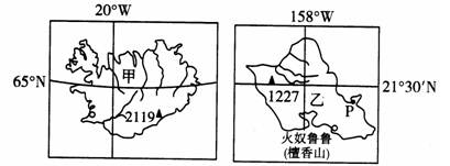 (2)乙岛地处________板块和________板块交界处,多火山地震。