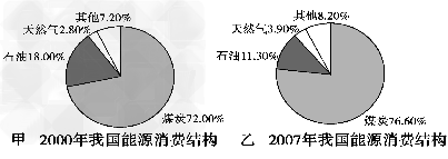 5、单选题  读我国2000年与2007年能源消费结构图,回答1—2题。