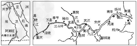 (2)试从气候条件和水系条件分析流经三峡工程的年径流量远高于流经阿斯旺工程的年径流量的原因: