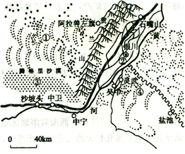 荒漠般的景观。图3--2--3是我国内陆某地区图,读图完成7~8题。
