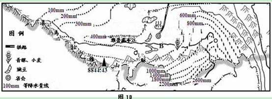(4)图10中B是该区域青稞、小麦、豌豆产区且产品的蛋白质含量高,请分析B地发展种植业的有利自然条件?