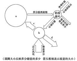 2.由图不难发现枯枝落叶源于植物体a,a的养分来自b土壤;d表示雨水淋溶作用,造成的养分损失情况;c表示供给养分。