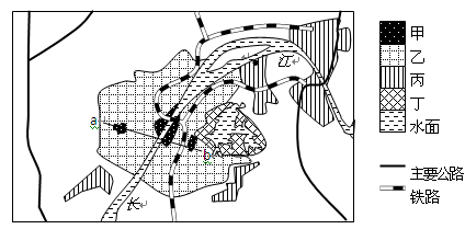 1.结合长江的分布和流向,工业区应布局于河流下游,故判断属于工业区的是丙图例;