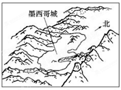 4、单选题 墨西哥城位于19°N、海拔约2 250米的盆地中(如下图),该市有2 000多万人口, 3.5万家工厂,约有300万辆汽车。据此完成问题。