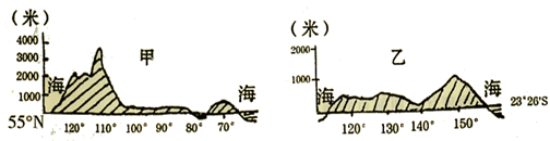 3、单选题 读图,甲乙为两个国家的地形剖面图,下列叙述正确的是?(?)