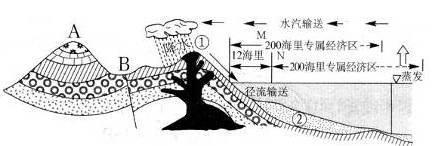 小题2:图中所示的水循环类型为海陆间循环,在其参与下,①处的 岩可以转化为②处的 岩。