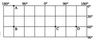 【小题2】若飞机从图中B点飞往D点,沿最短航线飞行,其方向是( )