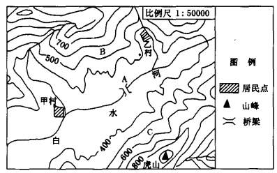 (3)试分析乙村比甲村多地质灾害(泥石流),多雾(深秋的清晨)的原因。(12分)