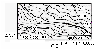 2、单选题  读“我国某地区等高线地形图”,回答下列各题。