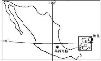 小题1:上图尤卡坦半岛为墨西哥著名半岛,面积约20万平方千米,在比例尺1︰5000000的地图上绘出来时,图上面积为