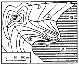 5、单选题 下图为28°N附近的等高线地形图,图中等高距为100米,读图完成下列问题。