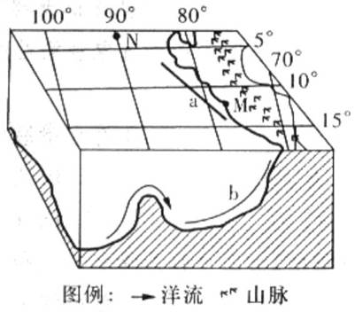1.a、b两处洋流流向正确的是2.M地沿海海域渔场形成的原因是