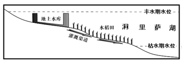 2、单选题 柬埔寨的洞里萨湖是一个水量季节变化很大的大湖。洞里萨湖北部的吴哥通王城两边有两个巨大的长方形人工湖—西池和东池。这两个大水池并不是在地面挖坑形成的,而是在地面上四面筑起土墙形成高于地面的水库。是著名的古老的灌溉工程。读图回答下列小题。