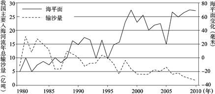 2、单选题 读我国海平面及主要入海河流年总输沙量变化图,据此完成下题。