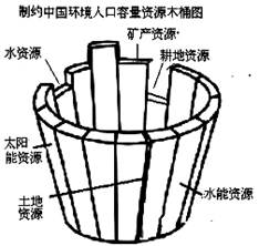 小题1:读“制约中国环境人口容量资源木桶图”,则制约我国环境人口容量的资源是( )