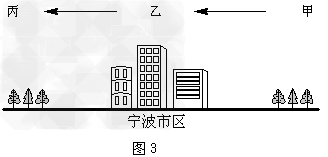 (4)图3为图1所示锋面经过宁波的过程,移动方向为从甲到丙。当锋面位于甲处时,乙处的气温较甲处? ?,当锋面位于乙处时,市区往往出现? 天气,在锋面从乙处移到丙处的过程中,市区气压的变化是? ?。