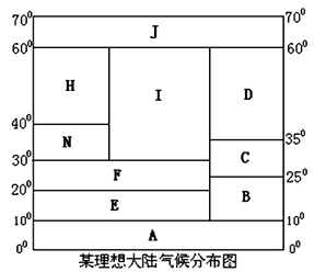 (1)根据理想大陆气候分布规律,对应填写各字母所代表的气候类型。