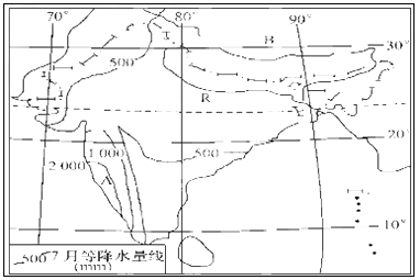 (1)图示为南亚地区,R河是恒河。主要补给水源是雨水和冰雪融水。该河位于热带季风气候区,受夏季风强弱和气温高低变化影响大。所以河流水量季节变化大。