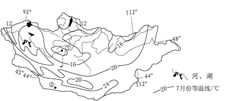 5、单选题 下图示意亚洲某内陆国水系分布和七月份气温分布情况。读图完成问题。