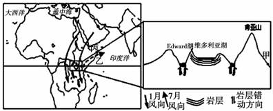材料三 图中东非地区的甲地,海拔1800米,下为该地1、7两个月的气温降水资料