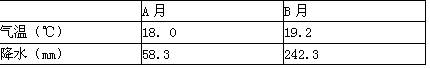 B最可能是?(1、7月)的气温降水资料,判断的依据是什么?(6分)