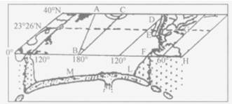 3、单选题 下图中AB表示昏线,读图回答下列各题。
