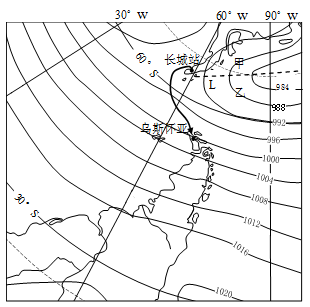 小题1:据图推测,虚线L处天气系统与甲、乙两地天气特点为