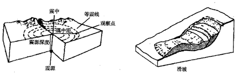 4¡¢µ¥Ñ¡Ìâ ÏÂͼΪµØÕð¡¢»¬ÆÂÁ½ÖÖµØÖÊÔÖº¦Ê¾Òâͼ£¬¶Áͼ»Ø´ð1¡ª2Ìâ¡£