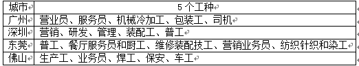 4、单选题 截至2月26日,2014年春节后珠三角地区5个行业、5个工种用工缺口较大,读下表可知,珠三角地区用工缺口较大的5个行业以