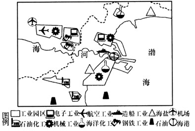 2、单选题 天津滨海地区已经形成综合性工业地域,阅读天津滨海地区工业地域分布图,结合图文材料回答所示工业部门积聚的主要原因,是共同利用了天津滨海地区的
