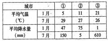 4、单选题 该表是三个城市的气候资料,读表回答问题。