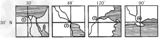 3、单选题 读30°N线附近四个地区简图,回答1—2题。