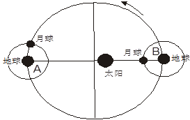2、单选题  读日、地、月相互运动图,完成下列各题(7分。每空1分)。