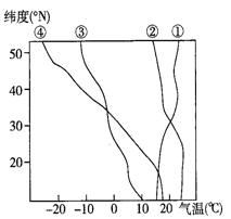 小题1:图中能正确反映我国东部1月、7月气温随纬度变化的曲线分别是?