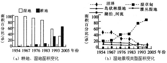 2、单选题 浓江流域,位于黑龙江省三江平原内,学者对其湿地景观的多样性、景观优势度等方面的变化动态进行了研究。景观多样性的大小反映景观类型的多少和各景观类型所占比例的变化。景观优势度越高,表明组成景观各类型所占比例差异越大,也即一种或几种少数景观类型占优势。读1954年~2005年浓江流域湿地景观变化动态图,回答1~2题。