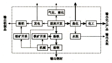 ①煤—电—铝?②煤—焦—化?③煤—电—钢?④煤—铁—钢?⑤煤—气—液