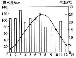 4、单选题 读“田纳西河流域某地气温、降水图”,回答1—2题。