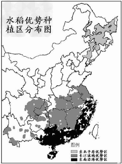 3、单选题 2011年9月19日,湖南省农科院发布:杂交水稻之父袁隆平院士指导的超级稻第三期目标亩产900公斤高产攻关获得成功。读我国水稻优势种植区分布图(右),回答1~2题。