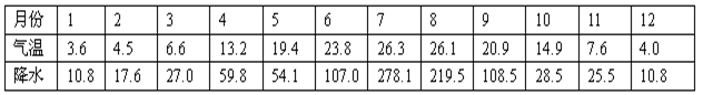材料一? M市各月气温和降水量