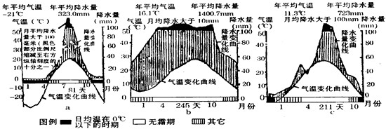 3、多选题  读生态学家研究气候对植被的影响时绘制的《生态气候图》。根据《a地气候类型示意图》上所作的说明,分析位于我国东部平原地带的b、c两地的气候类型示意图,并回答1~2题