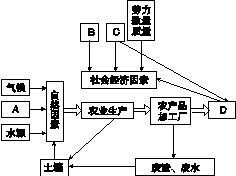 (3)图中D因素,可以影响农业生产的_______、_______。(2分)