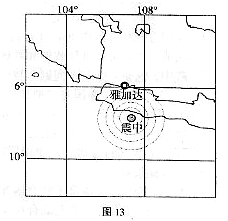 2、综合题 阅渎分析材料,回答下列问题。当地时间20四年9月2日,如图13所示地区发生7.3级地震。