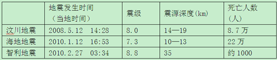 小题2:表中所示的三次地震中,智利地震造成的死亡人数最少。主要因为