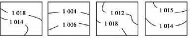 3、单选题 该图所示的四幅比例尺相同的等压线分布图中,风力最大的是