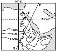 1、单选题 读 “世界某区域年等降水量(单位:毫米)分布图”,若PQ为昏线,此时可能出现的地理现象有( )