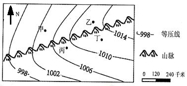 D.丁地吹偏东风,天气晴朗