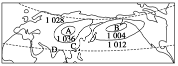1.图中A处的气压中心名称是 ,该图表示的是 月(1或7)海平面及地面的气压分布状况。造成AB两处气压差异的主要原因是 。