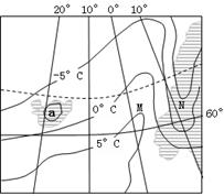 3、单选题 图为某地1月平均气温分布图(阴影部分为陆地)。读图,造成图中M、N两处等温线发生明显弯曲的主要因素分别是