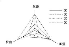 1、单选题 图为“某四种货物生产运输过程中的相关特征”,读图回答问题。